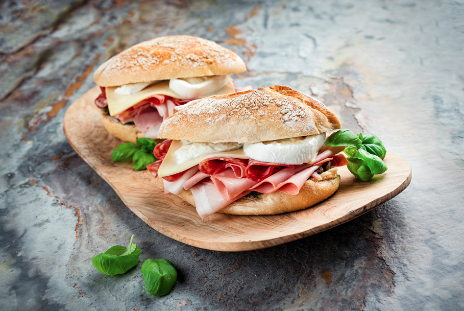 Pagnottella con prosciutto crudo nostrano del salumificio Bonicar, vacchino della latteria Santa Rosa e carciofi sott'olio dell'az.ag. Agnoni