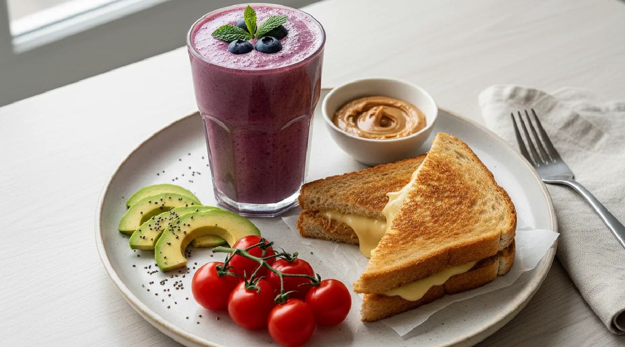 Avocado + banana + milk + peanut - smooth healthy fats