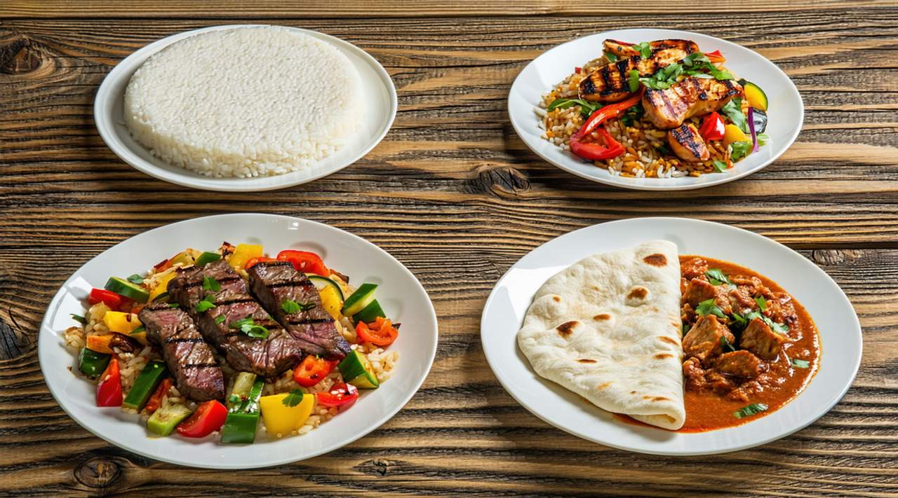 Premium steamed rice with a selection of seasonal vegetables and aromatic spices.