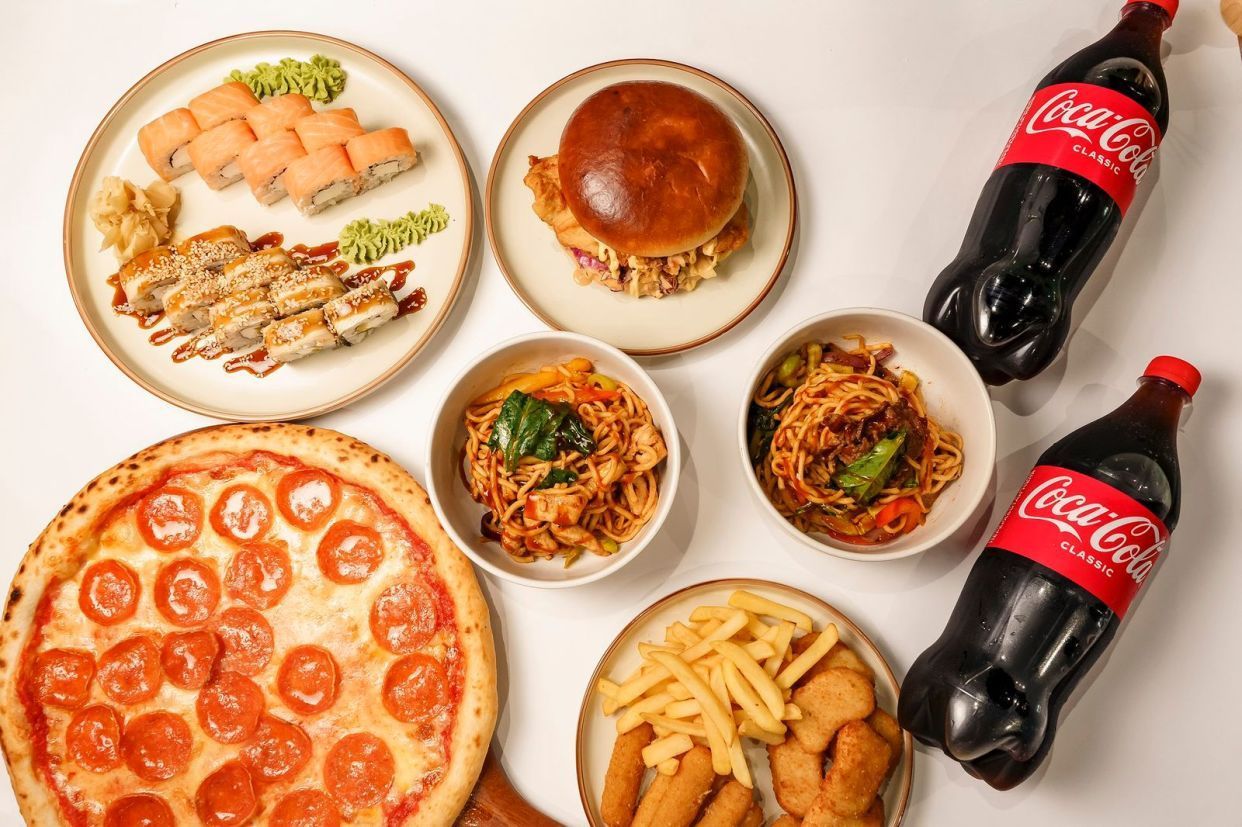 - Говяжий бургер - Картофель фри - Coca-Cola (0,4 л.)