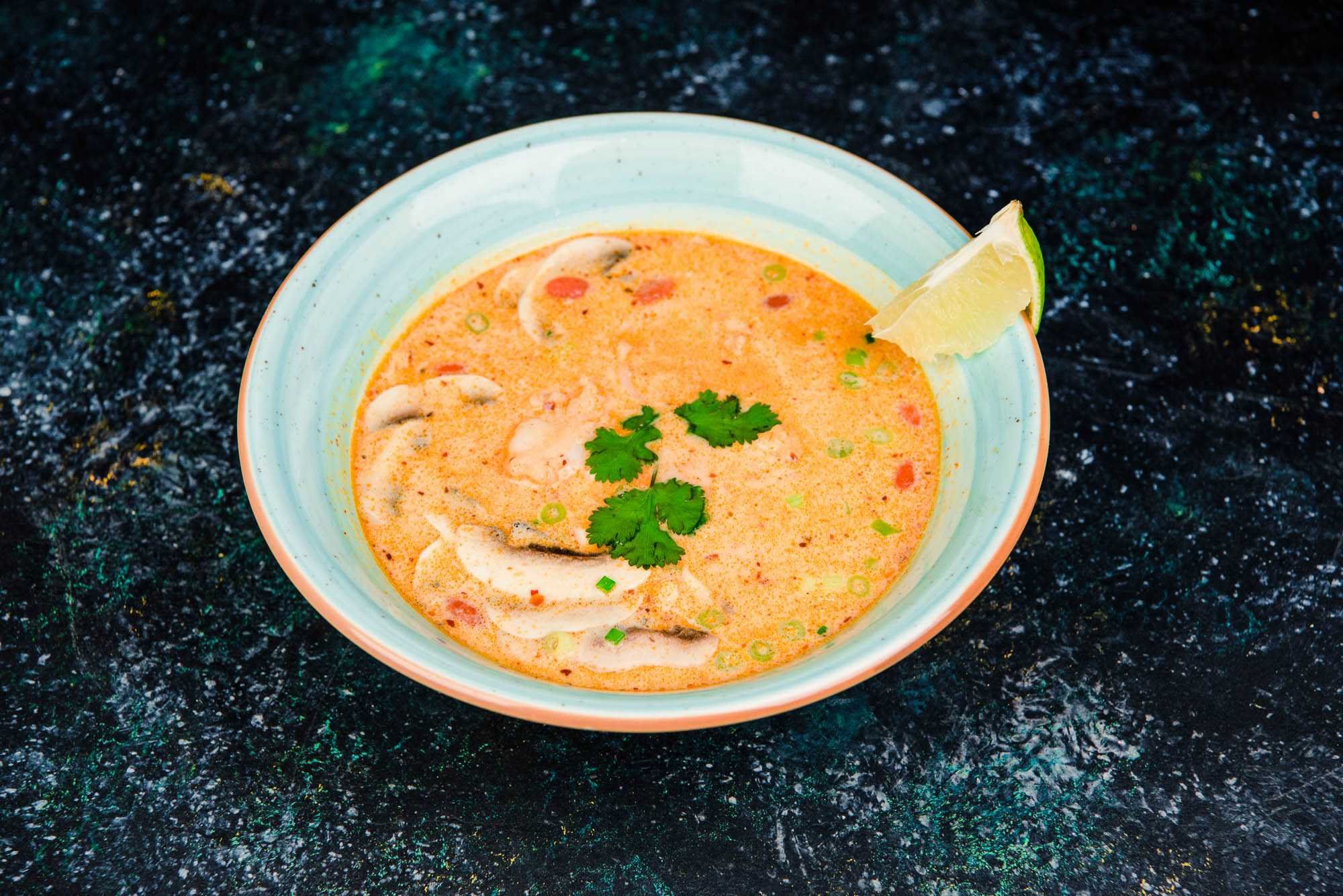 Острый тайский суп с морепродуктами и кокосовым молоком.
