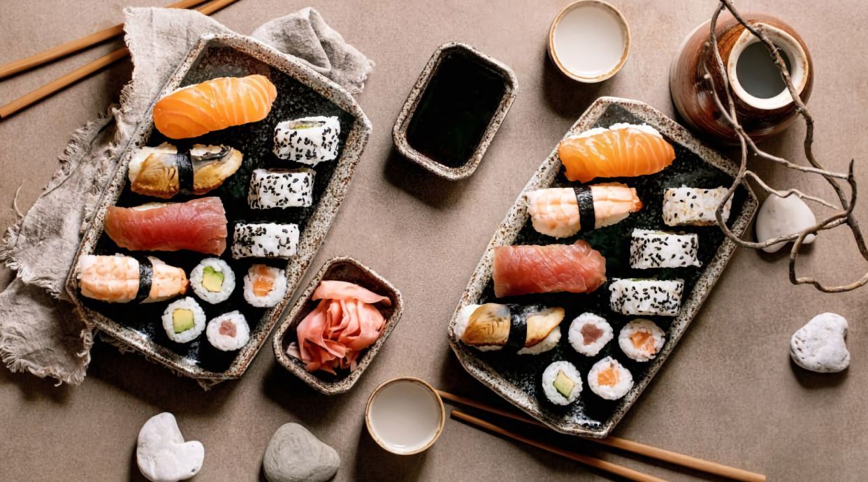 Креветки нигири, премиальный рис для суши, нори