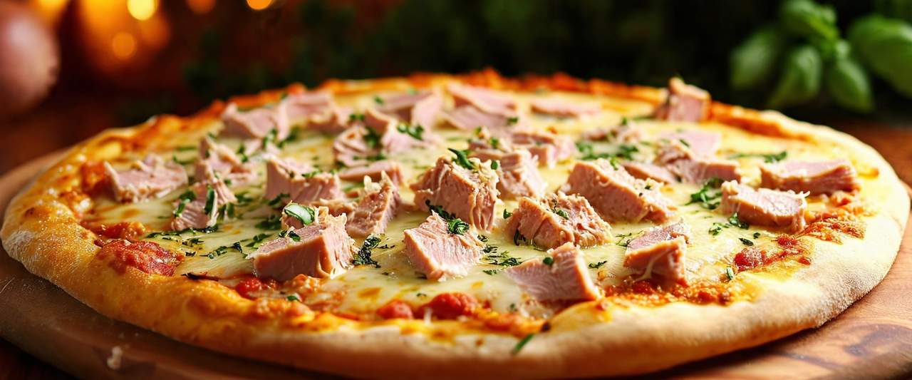Sauce tomate, mozzarella, viande hachée, poulet, fruits de mer, jambon, olive noir