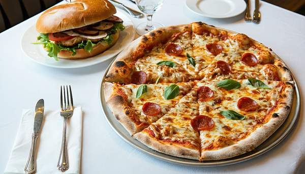 Sauce tomate, mozzarella, saucisse de bœuf, olives noires, pepperoni, oignons, origan