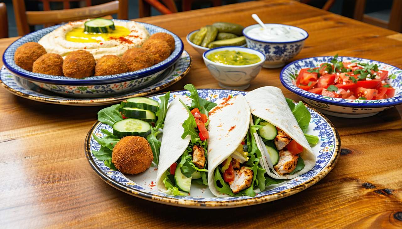 Mixte de poulet et viande avec garnitures dans un pain libanais