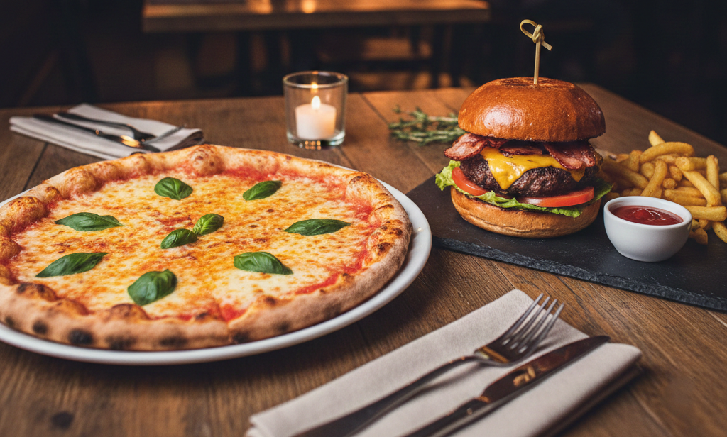 Sauce tomate, mozzarella, fruit de mer, poulet, viande hachée jambon, légumes