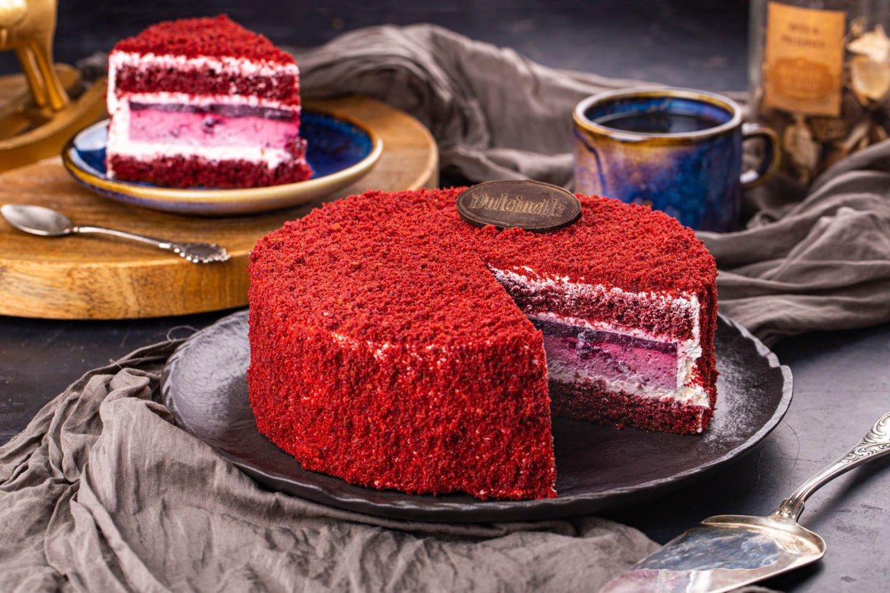 * Atenție, prețul este per kg. Acesta poate varia în funcție de gramajul tortului. Tort din pandișpan roșu, cremă de brânză mascarpone, umplutură de fructe și cheesecake cu cremă de brânză philadelphia cu umplutură de fructe.