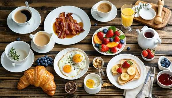 Savršen doručak za one koji cene jednostavno uživanje i profinjen ukus. Izbor nežnih kobasica i aromatičnih sireva, posluženih uz hleb po izboru — kroasan, ćabatu, gžere ili integralni hleb, kao i hrskavi musli sa jogurtom i svežim bobičastim voćem, uz džem ili med po želji.