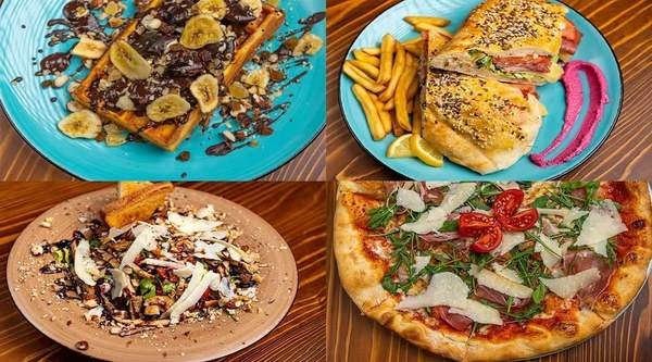 Domaća lepinja, paradajz, namaz, mozzarella, mix salata, pesto, pomfrit