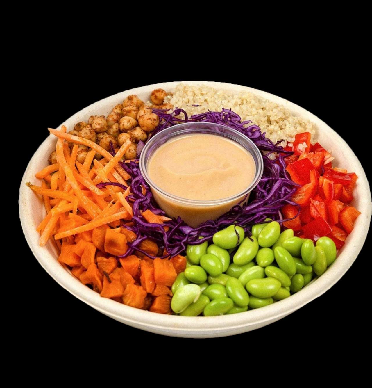 Zelena salata, proso,krastavac, kukuruz, leće,paradajz, mladi luk, vegan sos