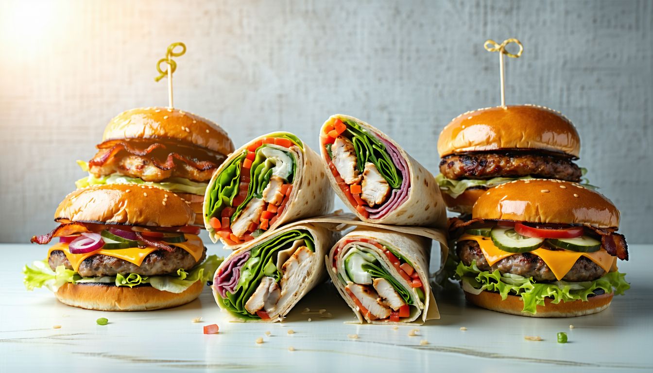 2x meso, 2x dimljeni sir, pršuta, paradajz, crni luk, kiseli krastavac, tartar sos, senf, ketchup, pomfrit