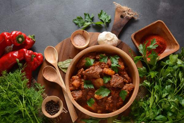 Juneći gulaš sa domaćim pireom od krompira 450 gr