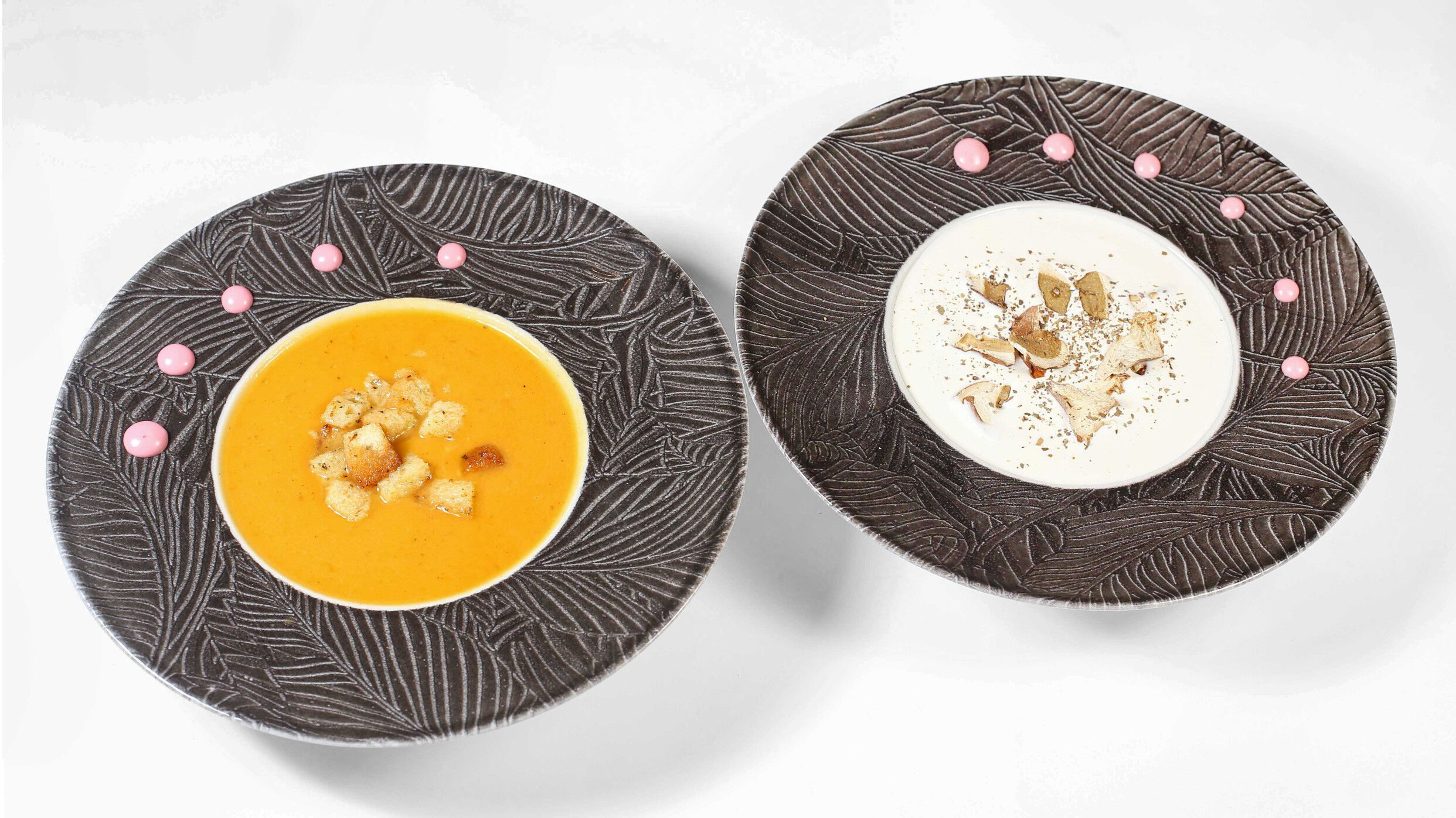 Biftek, vrganj, cvekla, neutralna pavlaka, parmezan, hrskava pančeta, marinada sa bijelim lukom