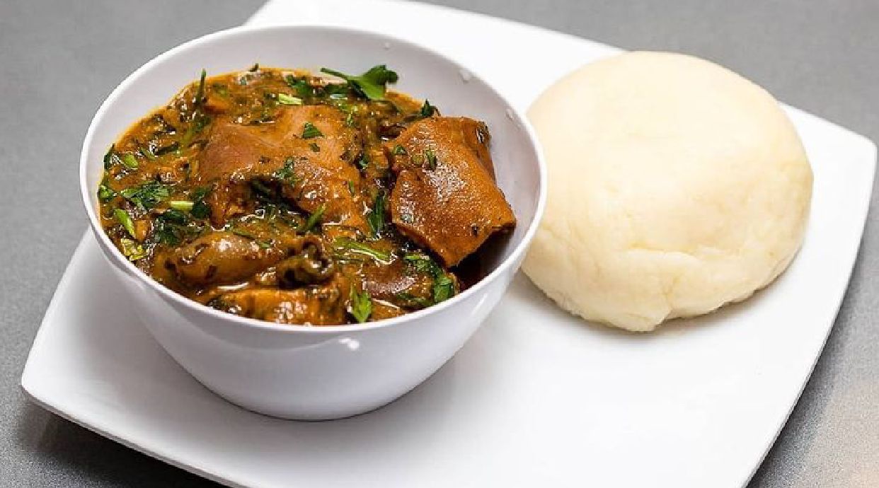 Rich draw soup cooked from ogbono seeds with cow head or assorted