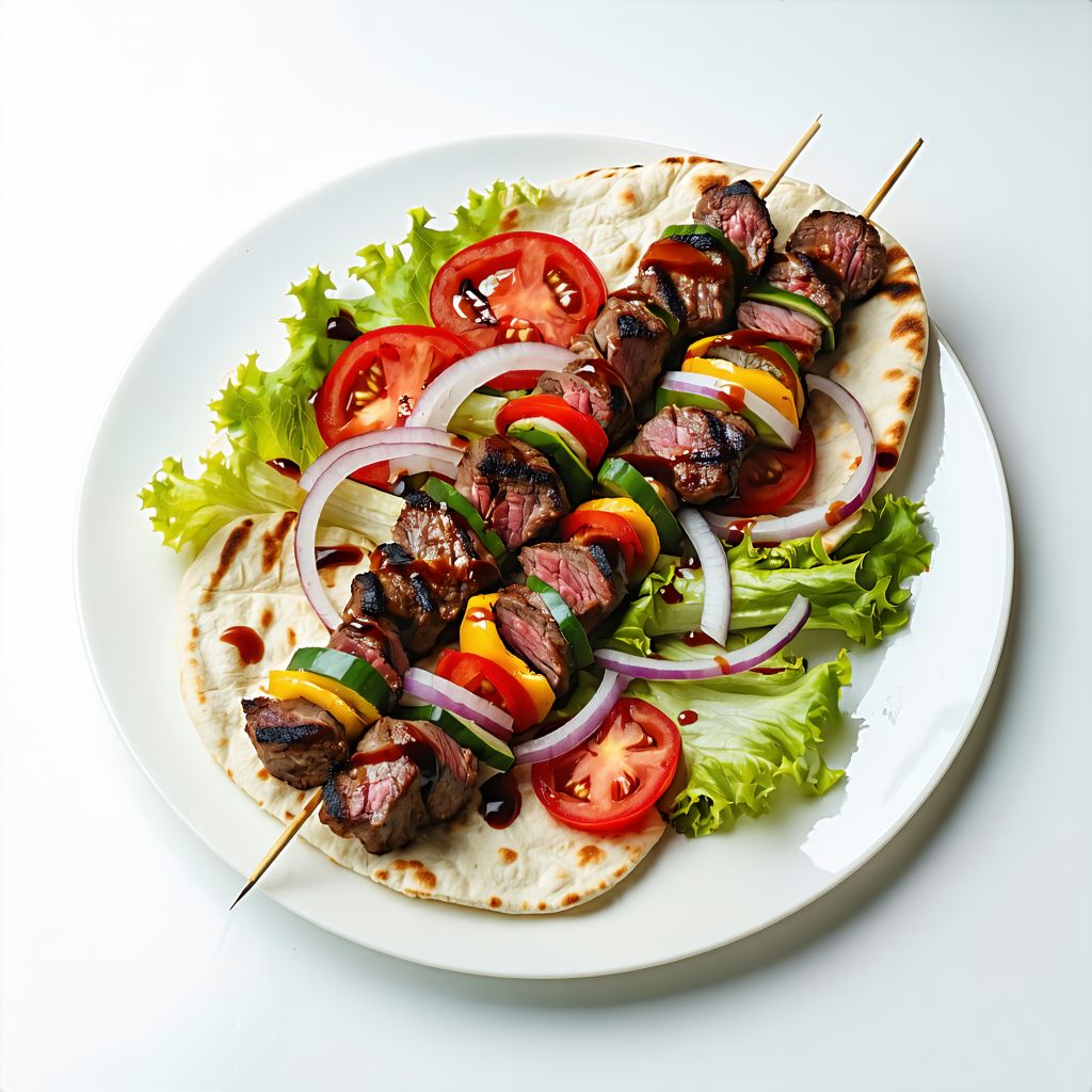 Grillowane mięso smażone na maśle z papryką i cebulą, surówki, sos *zdjęcie poglądowe