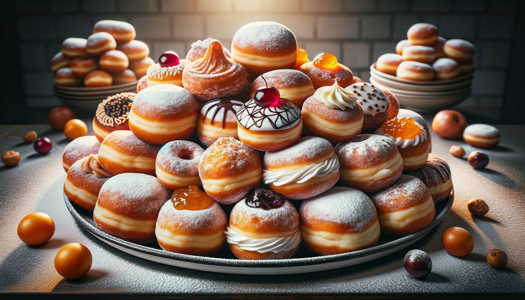 Pączki niespodzianka z miksem nadzień kremowych i owocowych