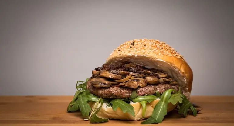 Angus 100%, Cogumelos, Fiambre, Queijo, Alface, Tomate, Molhos e Batata Frita