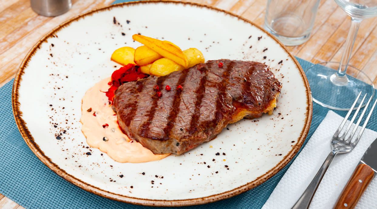 Bifes de porco,ovo estrelado, salada e batata frita.
