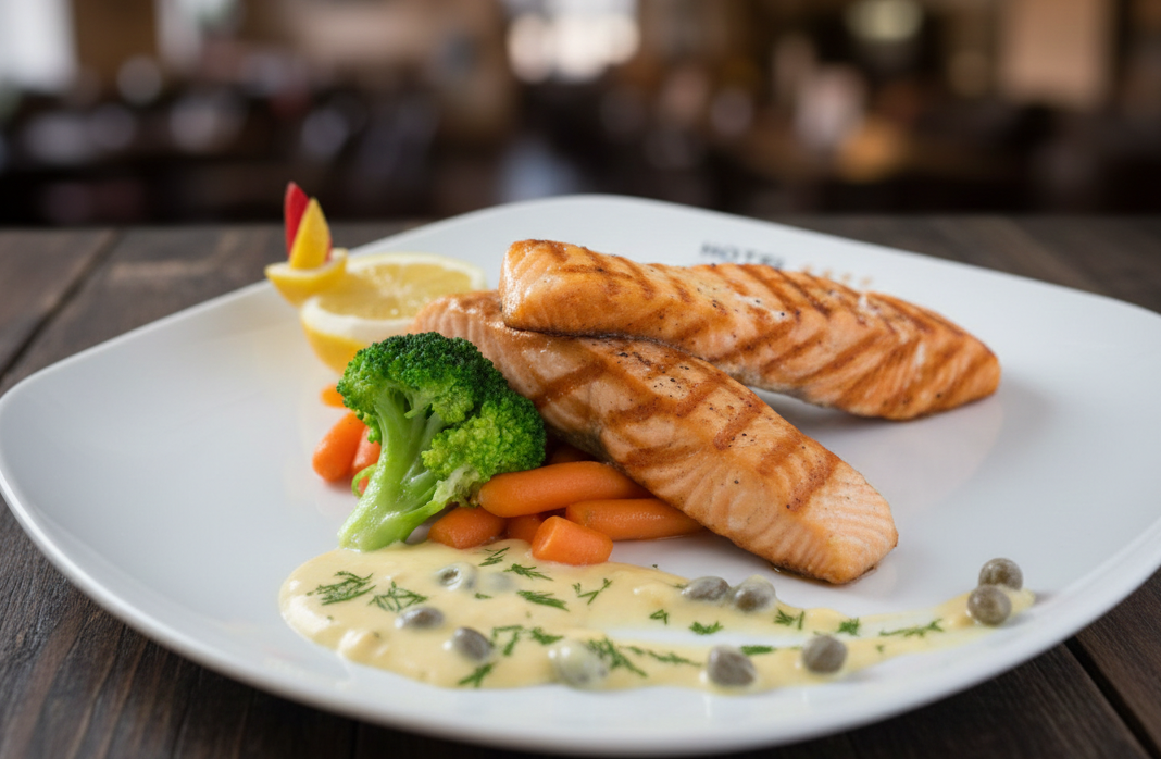 Somon File cu legume la aburi și sos de capere