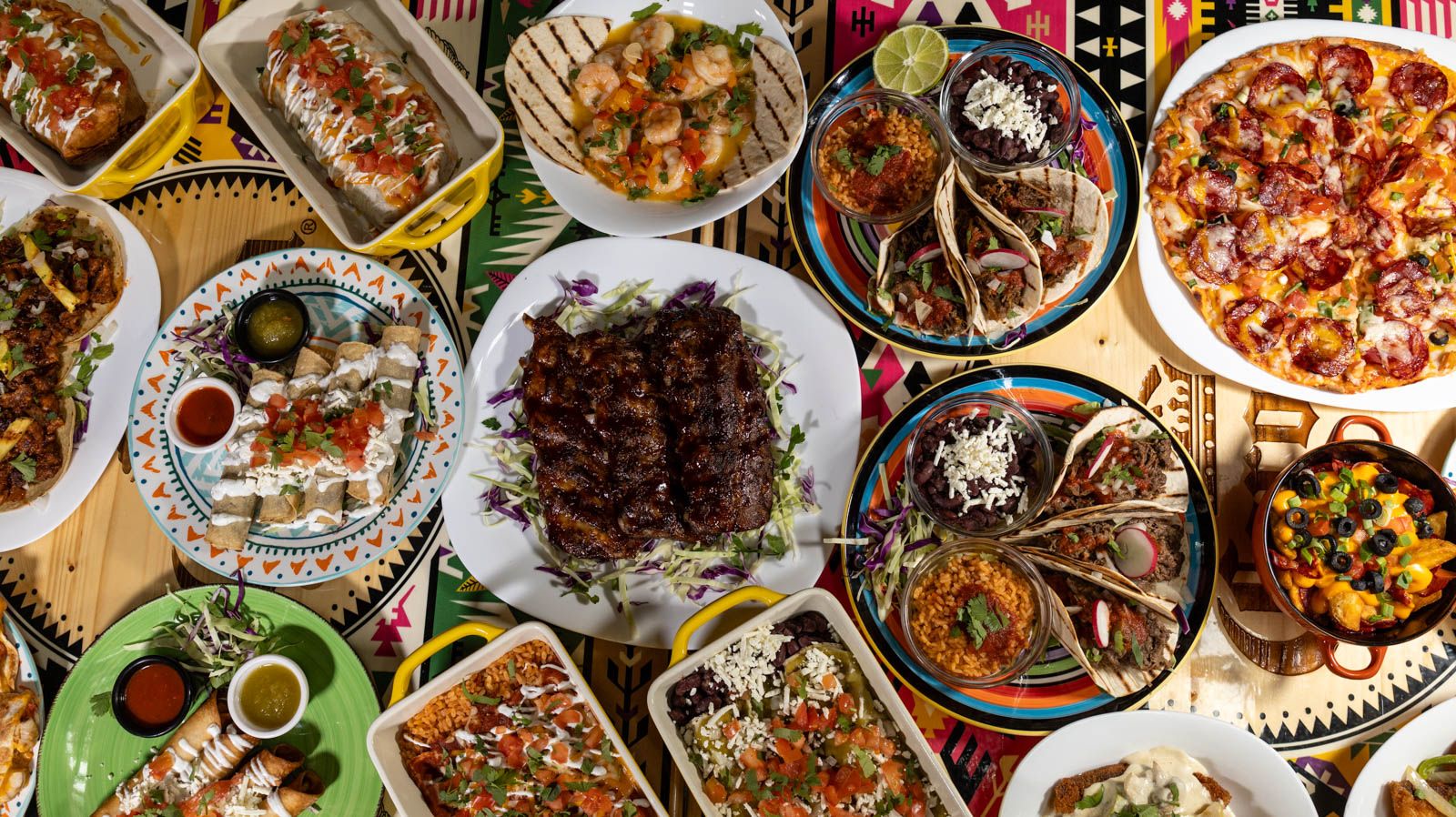 2 Tacos de carnitas, 2 Tacos de pescado, 2 Tacos de carbon, 1 Fajitas de pollo, tortilla de porumb si grau, 1 coaste bbq, 2 aroz, 2 frijoles, 1 ensalada de nopales, 1 flautas, lime, salsa chipotle, nachos, guacamole, sos bbq, salsa mex, smantana