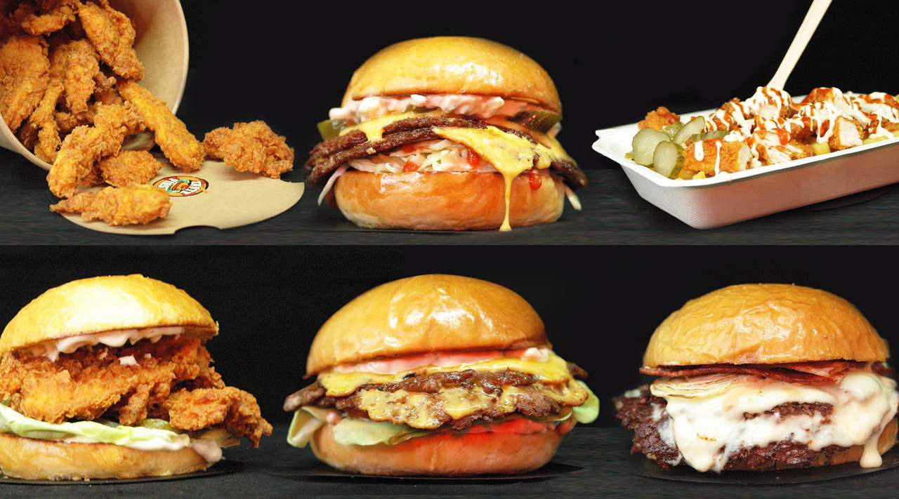Doua bucati de carne (antricot cu bacon), gouda, sos burger, castraveti murati, ceapa grill, bacon, chifla de casa - 400g