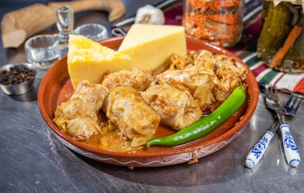 Varză călită cu carne și mămăligă