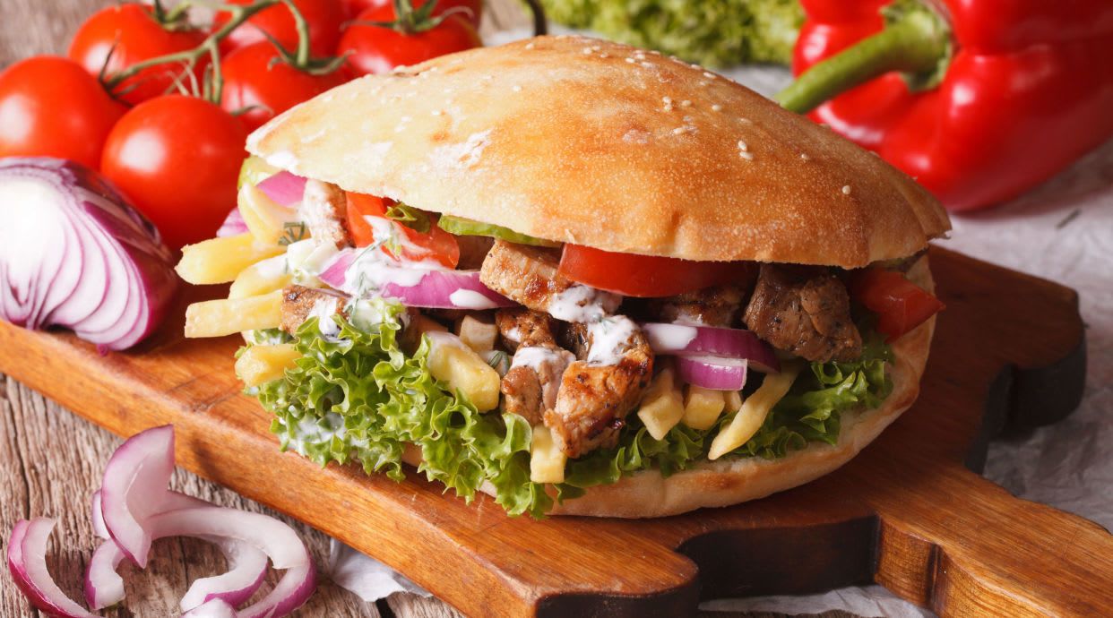 Chifla, Piept de Pui, Cartofi, Salate, Sosuri