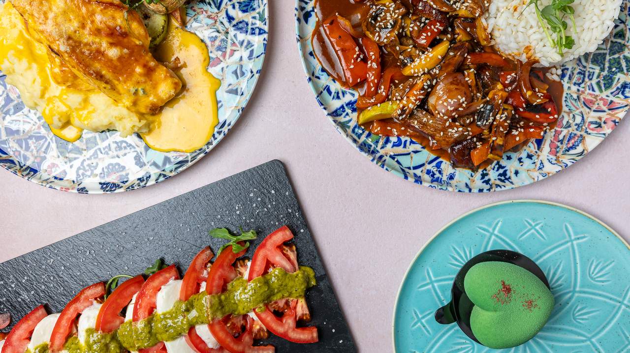 Biftek, grilovana tikvica, paprika, rtanjski sir, mix salata, dresing , senf, med