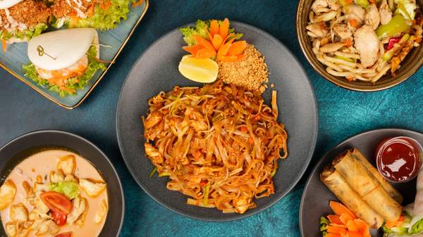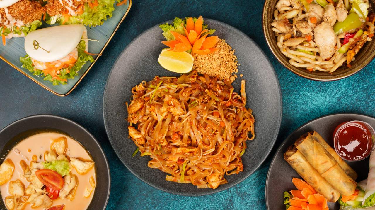 Prženi pirinčani rezanci u domaćem sosu od kikirikija, prženi sa jajetom, povrćem i piletinom