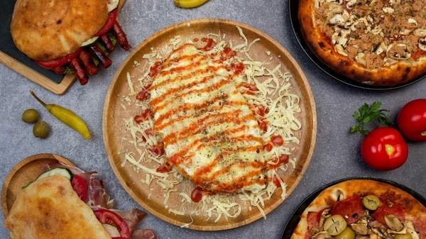 Kečap, kačkavalj, šunka, suvi vrat, kobasica, kuvano jaje, pavlaka, feferone, pečurke, origano
