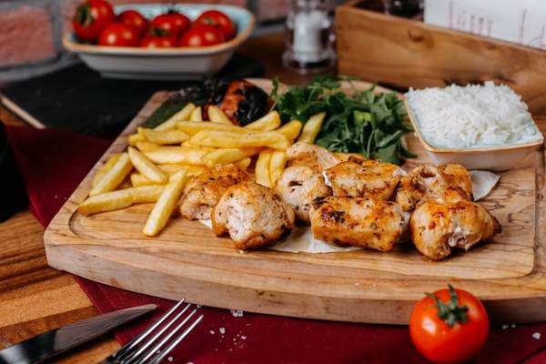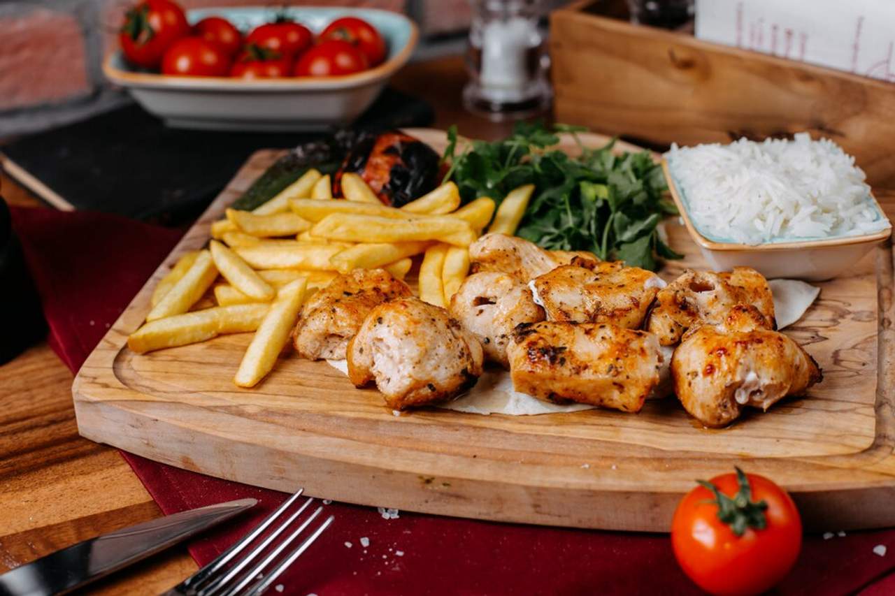 Ćevap meso, roštiljska kobasica, kobasica sa kačkavaljem, pileći file, vešalica, grilovana slanina sa pomfritom