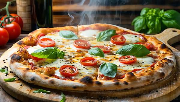 Pelat, mozzarella, cotto šunka, šampinjoni, masline, origano.