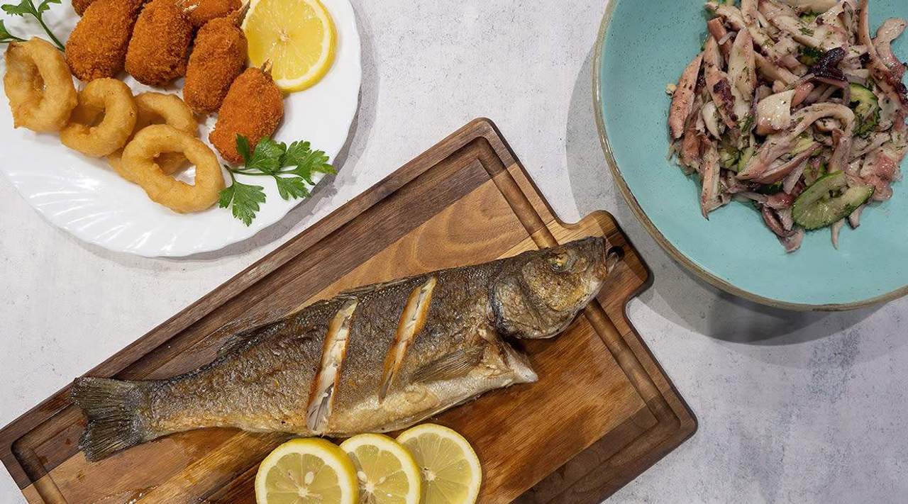Pnirani kolutići lignje i panirani surimi sa ukusom krabe