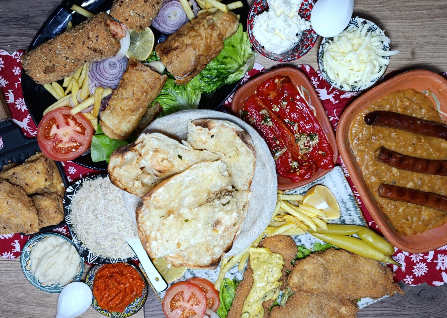 Komplet lepinja sa ćevapima, somun, jaje, kajmak, pretop, ćevapčići na ćumuru