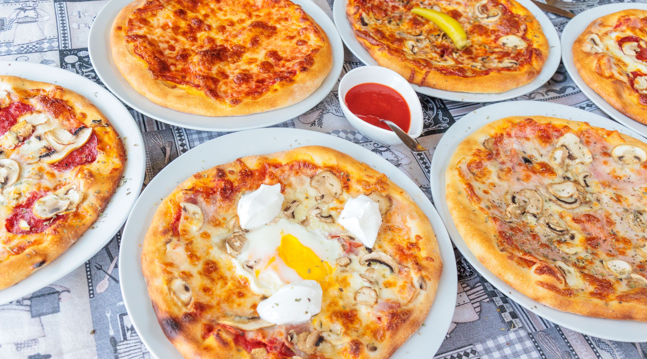 Sir, šunka, šampinjoni, kečap, jaje, kulen, pavlaka*Na velike pizze origano po želji na pizzu,a kečap dva komada po želji sa strane u posudicu