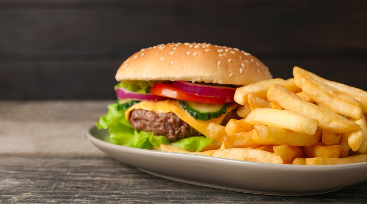 Bœuf haché, fromage, cornichons, oignons caramélisés, laitue, tomates, sauce royal cheese