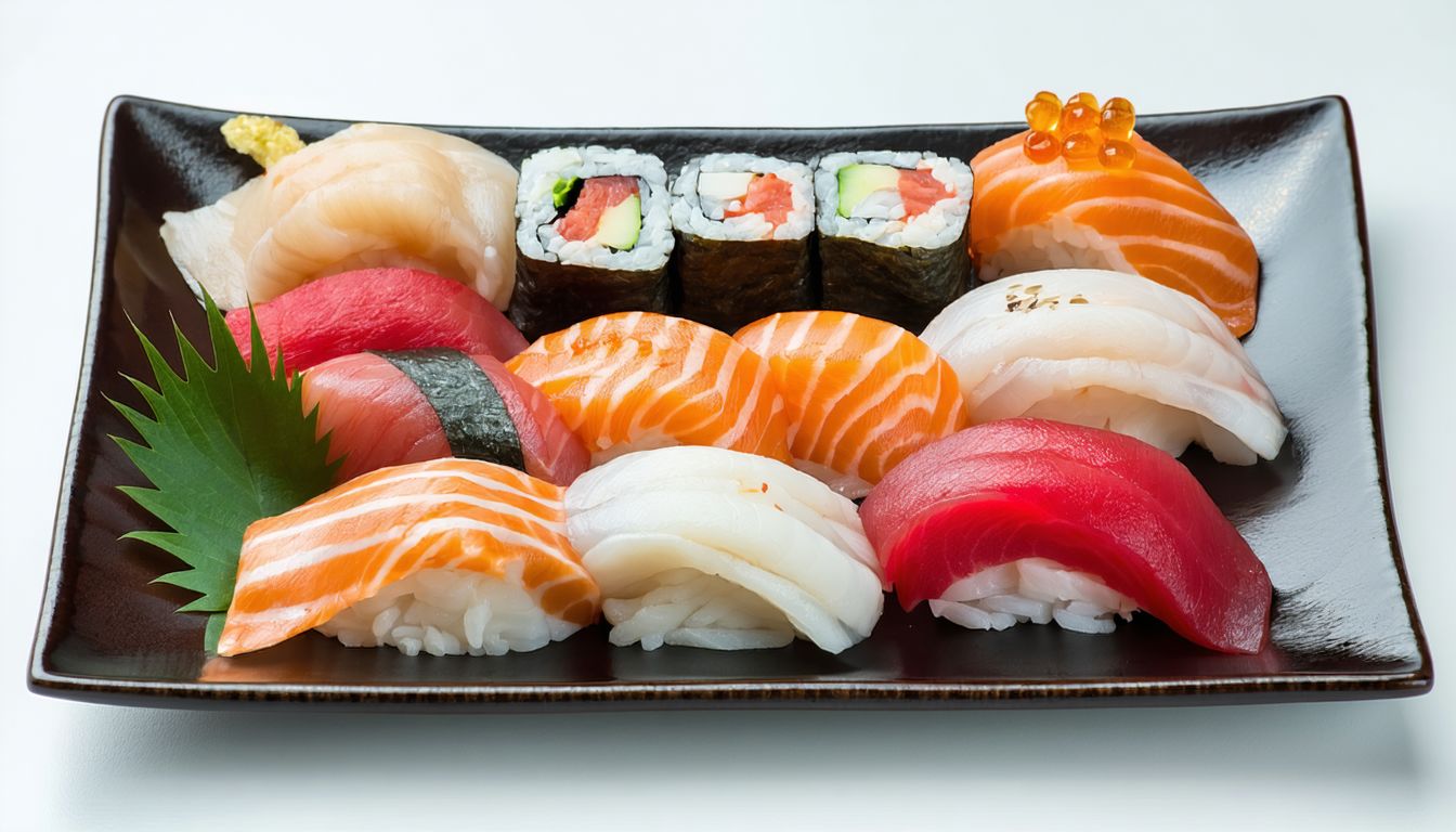 Норі, рис, сніжний краб, ікра Масаго, соус спайс, сир Філадельфія, креветка тигрова, соус унагі, авокадо, креветка пивна, ікра лососева, паніровка