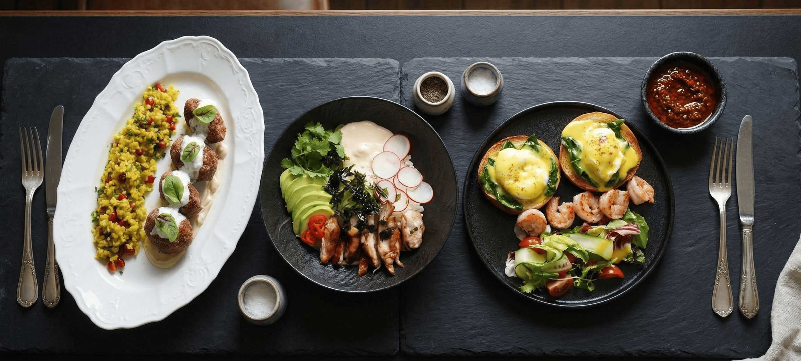 Насичений хумус із м’яким вареним яйцем, ароматним кебабом, свіжими овочами та яскравими оливками. Ця страва поєднує кремову текстуру, пряні нотки та свіжість, створюючи збалансований і ситний сніданок із східним колоритом.