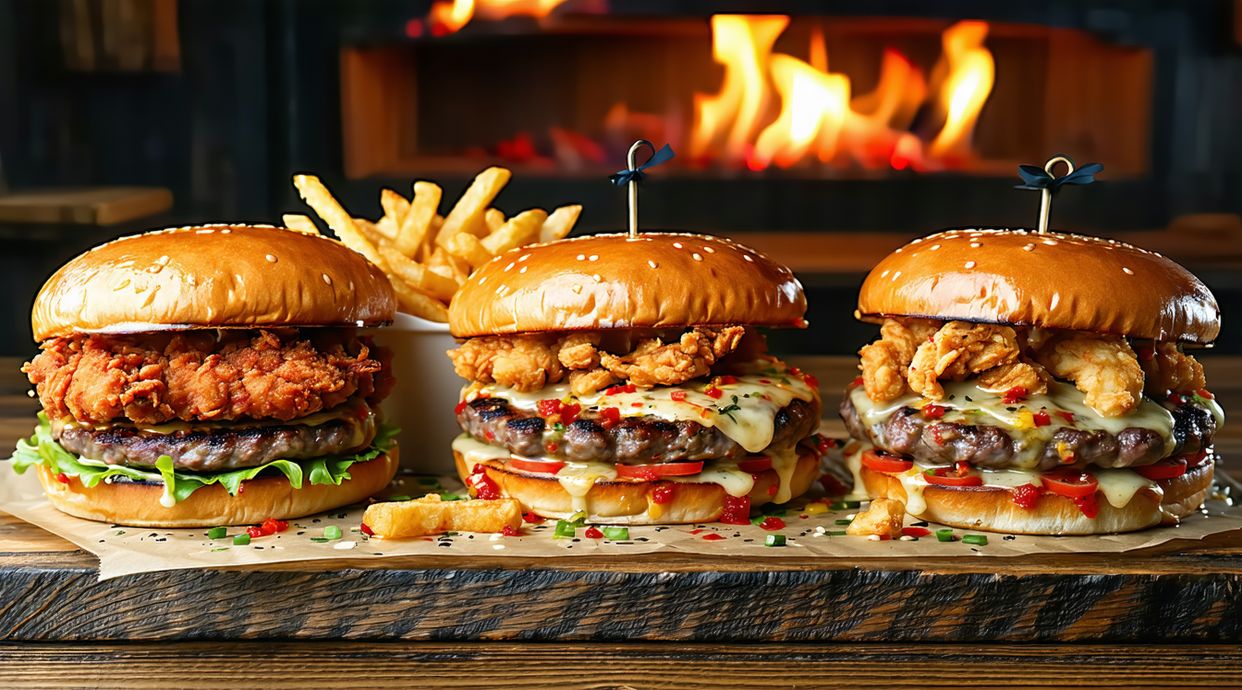 Two chicken patties stacked in one hearty burger