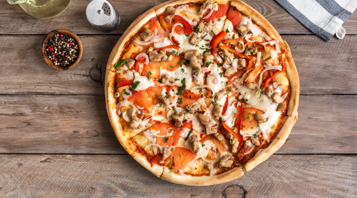 Пица с пилешко месо и гъби (1200г)
