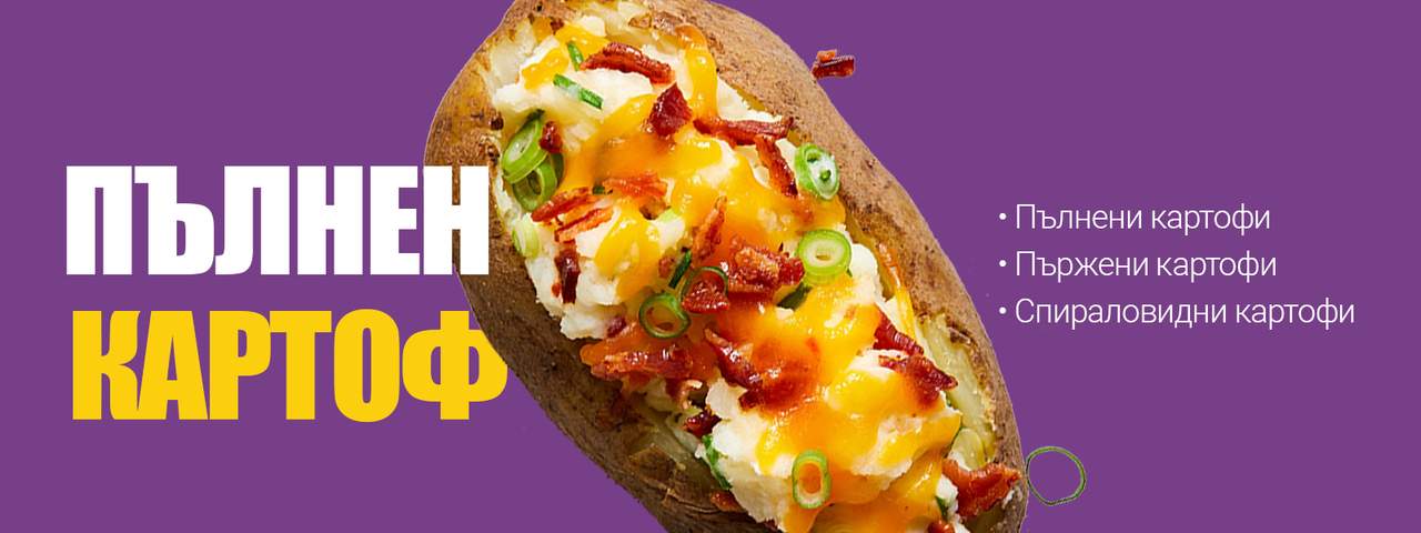 Заклад «Картофчо» пропонує великий асортимент товарів, які ви можете замовити будь-коли. Ознайомтеся з каталогом товарів, які заклад «Картофчо» пропонує своїм клієнтам, та оберіть ті з них, які хотілося б замовити.