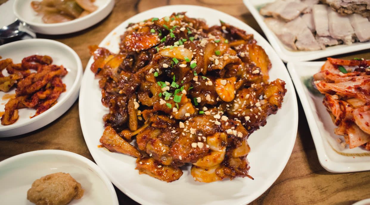 Свинко месо, лук, чушка, морков, лютиво, сладко, кисело - 700г