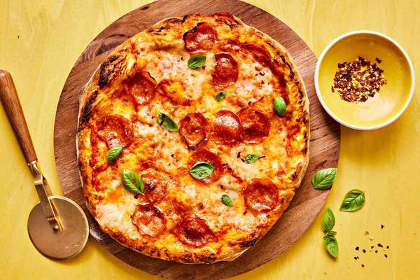 Доматен сос, моцарела, пикантен салам ветричина чушка