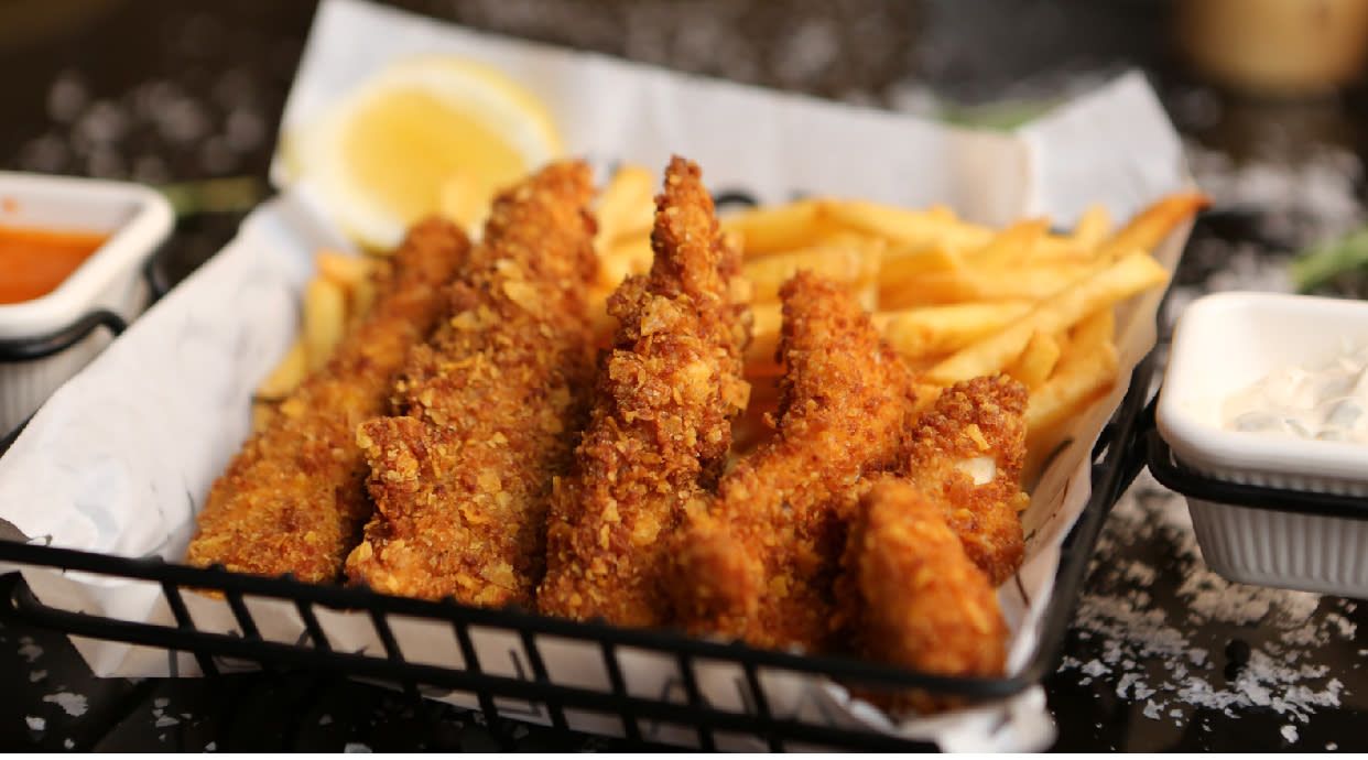 Пилешки панирани жулиенки с чеснов сос