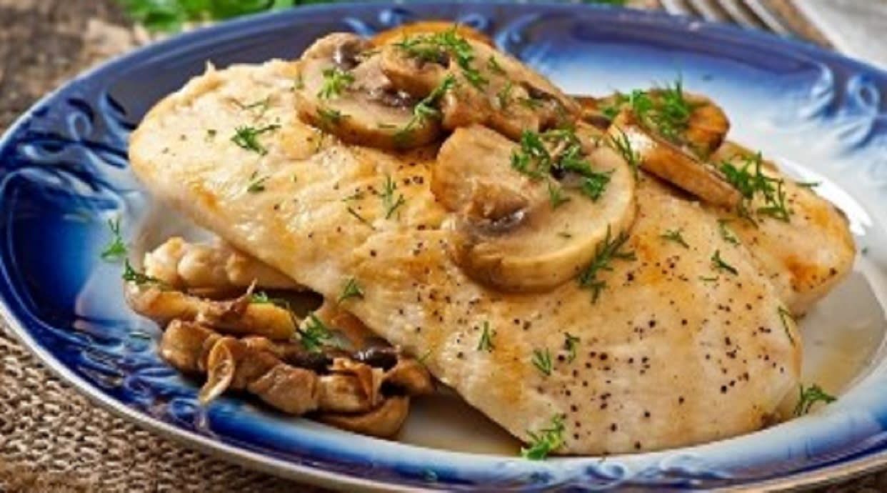 Пилешки дробчета със чушка и гъби на тиган