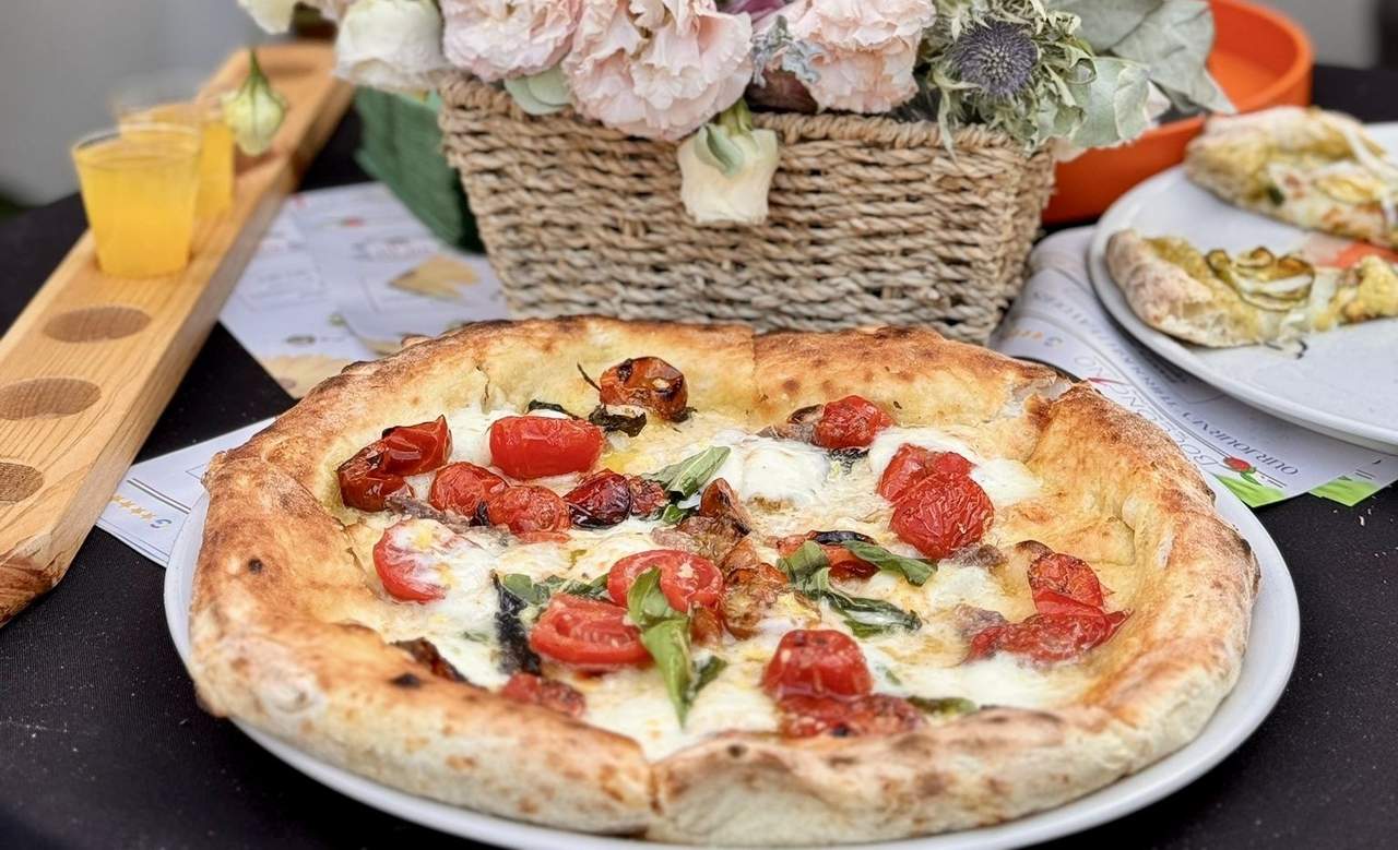Неаполитанска пица с пухкав борд, гуанчале, яйце, моцарела, пекорино, грана падана