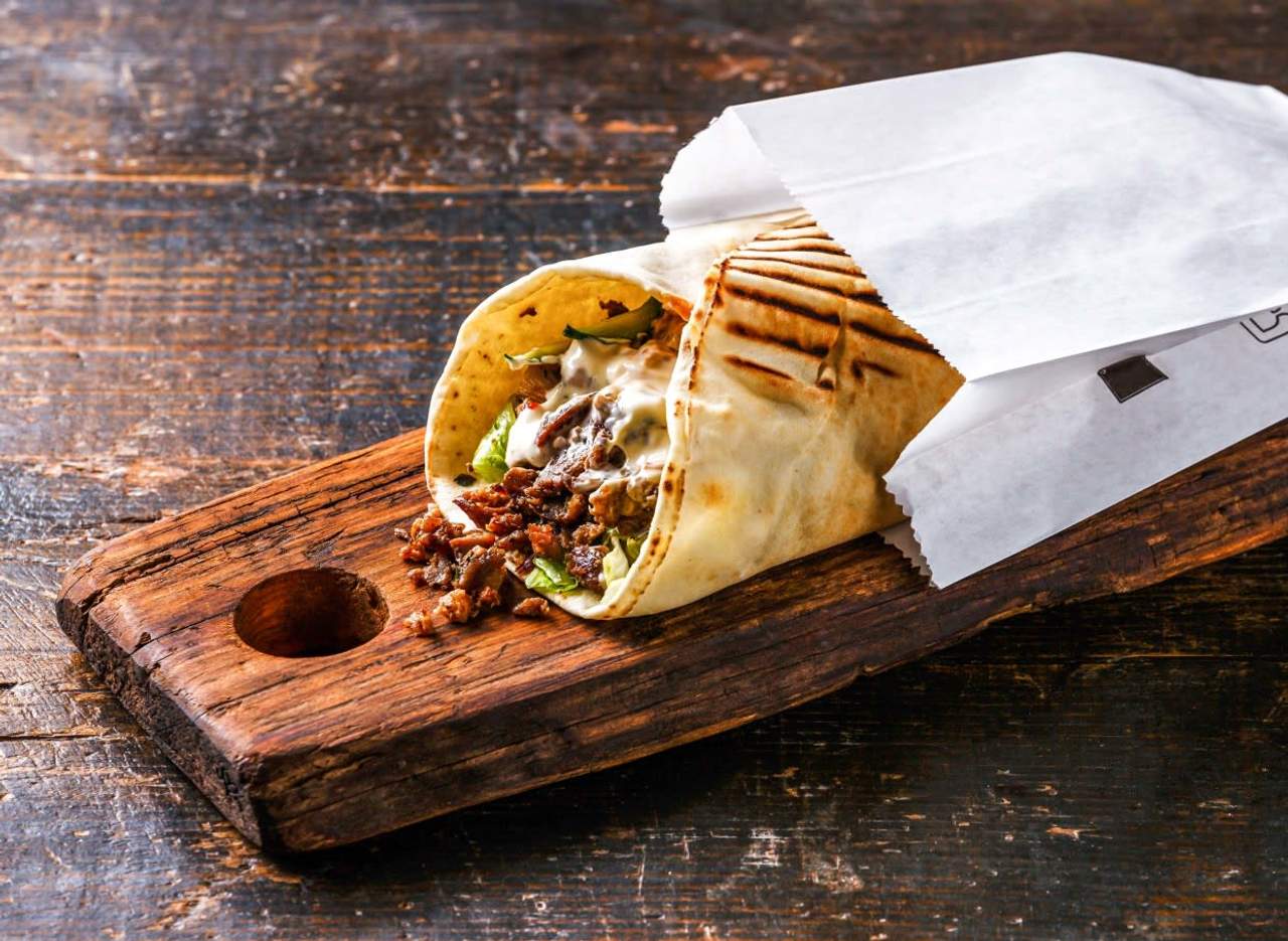 Суджу в арабски хляб, зеленчуци, сосове