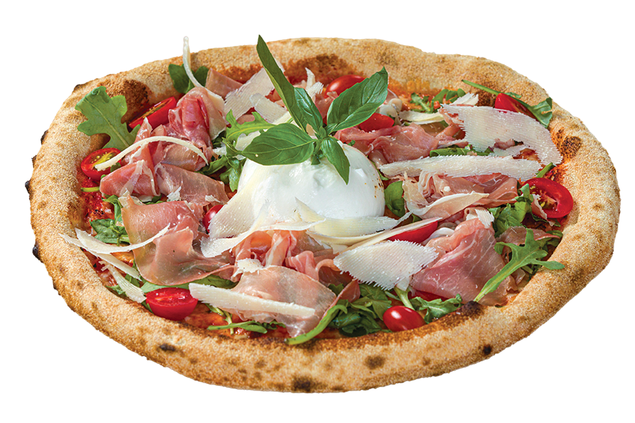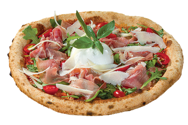 Домате Сос Мутти, Рикота, Прошуто Кото, Скаморца, Печурки, Рукола, Пармезан, Зехтин