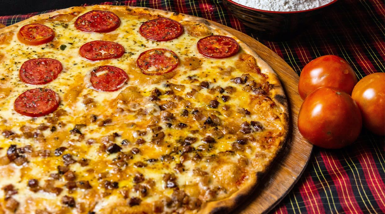 Доматен сос, моцарела,луканка, бяло сирене