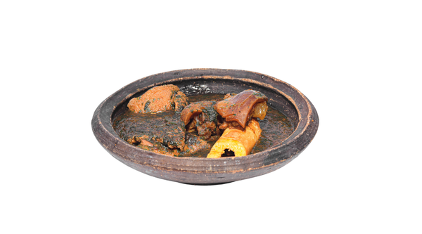 Pâte de manioc fermentée accompagné d'une sauce à base de jus de graine de palme